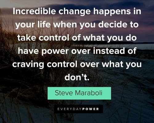 Our frustration, fear,disillusionment, disappointment, anger, etc., often comes from our lack of control. It makes us feel powerless. So the above quote is great. Take control of what you can and let go of what you can’t. In reality, none of us has complete control. Only our creator does.