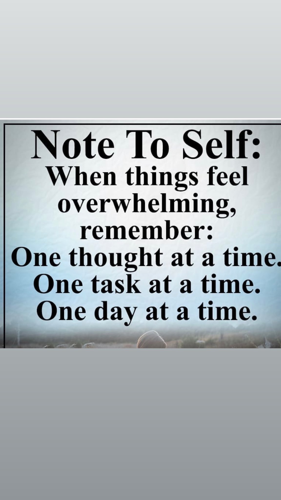This is a good example of today’s message. When we are overwhelmed, when we are feeling “stuck”, do one little thing. Check one little thing off of your list. AND count it as a win.